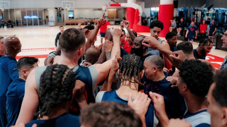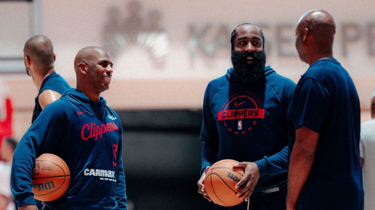 Today, the Clippers officially posted photos of the team's first day of training camp. Among them, Harden and Paul appeared in the same frame.
