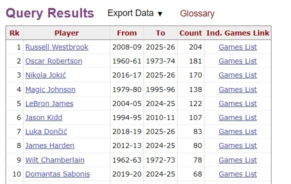 GuaSports > Basketball > Harden has reached 81 triple-doubles in his career, continuing to rank eighth in NBA history, two behind Doncic.