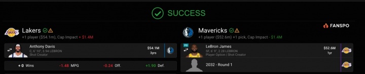 The Mavericks sent: Anthony Davis The Lakers sent: LeBron James + 1932 first-round pick