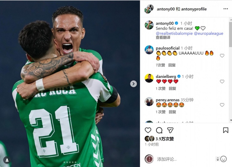 In the fourth round of the Europa League, Anthony scored to help Betis defeat Lyon 2-0 at home. Anthony posted a photo of celebrating his goal on social media after the game, with the text: "So happy to win at home!" Anthony played 10 games this season, scoring 6 goals and assisting 2 times.
