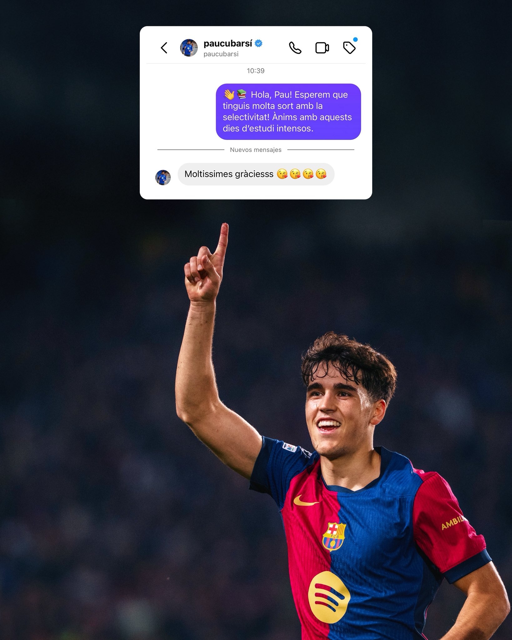 Barcelona official tweeted a post, wishing the team's 18-year-old defender Kubasi and Spanish students a smooth college entrance examination (EBAU, Spanish University entrance examination) and bringing a screenshot of the chat history. There is a message about Kubasi in the picture: Hello, Kubasi! I wish you good luck in the selection exam! Come on, it’s been hard to study these days. Kubasi replied: Thank you very much! KuBazi turned 18 in January this year. He played 56 times for Barcelona in each competition this season, contributing 1 goal and 4 assists, a total of 4,213 minutes. Currently, Kubasida's turnover price is 80 million euros.