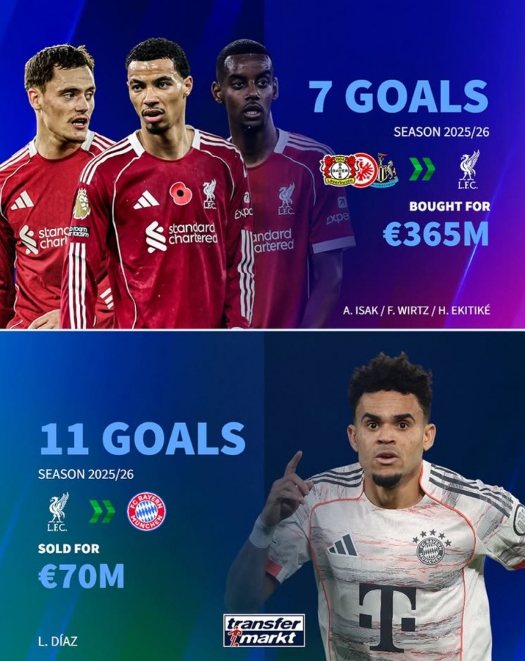 Liverpool has spent nearly 400 million on Wirtz, Ekitic and Isaac for a total of 7 goals this summer, and Dias has scored 11 goals.
