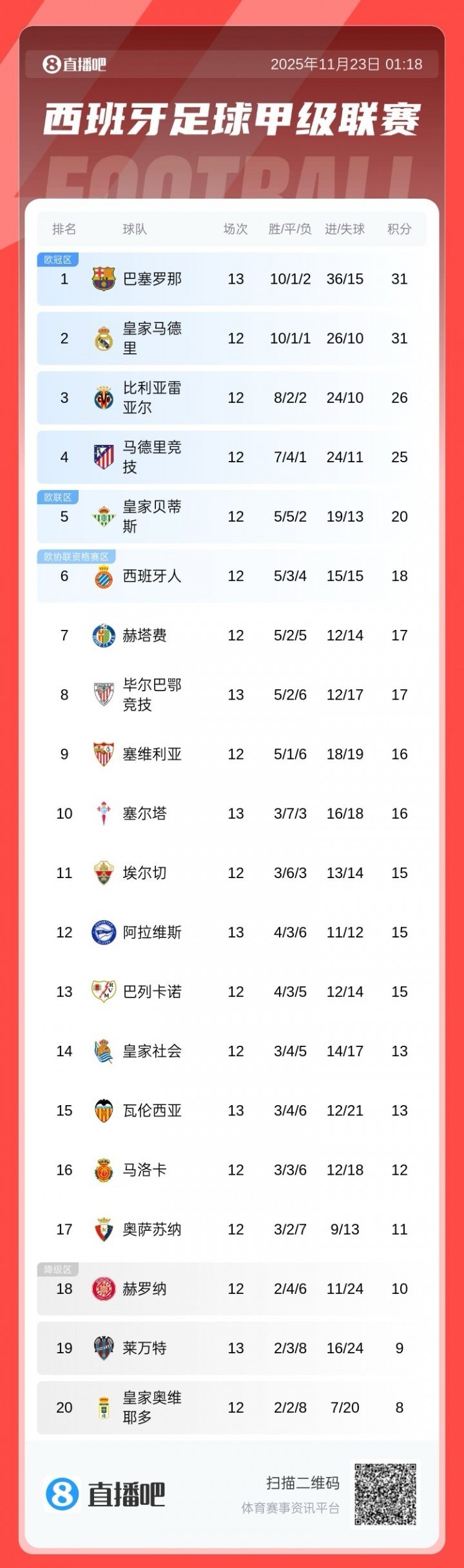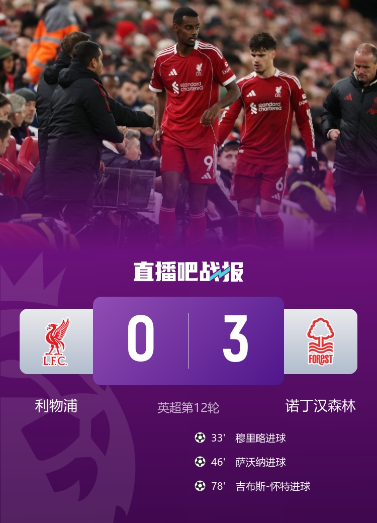 【Game Report】 suffered 6 losses in the past 7 rounds! Liverpool fell to 11th place 0-3 at Forest. The Red Army failed to score 21 shots in the game In the 12th round of the Premier League, Liverpool lost 0-3 at home to Nottingham Forest. They lost 6 games in the past 7 rounds and have fallen to 11th place in the league standings. 4 points behind the top spot in the first game! Manchester City 1-2 Newcastle United's 4-game winning streak in all competitions came to an end. Donnarumma repeatedly made brilliant saves Manchester City lost to Newcastle United in an away game. Barnes scored twice, and both sides repeatedly wasted excellent opportunities. Barcelona defeated Biba 4-0 in their first game back at Camp Nou, Lewandowski scored and Ferland scored twice Barcelona defeated Biba 4-0 in their first game back at Camp Nou, and Ferland scored twice. Let 2 chase 6! Bayern reversed Freiburg 6-2, Olise scored 5 goals, Karl passed and shot Kane Jackson and scored After Bayern conceded two goals at home, they scored 6 consecutive goals to defeat Freiburg. Olise scored 2 goals and 3 assists to perform a world-class performance! Bundesliga - Dortmund 3-3 Stuttgart Adeyemi scored in the 89th minute and Ondaev scored a tie in the 91st minute + hat trick Dortmund was tied in stoppage time by Stuttgart, and Ondaev scored a hat trick. No win in two rounds! Juventus 1-1 Fiorentina Kostic scored and Mandragora equalized Juventus drew 1-1 with Fiorentina, suffering two consecutive draws, and it is difficult for Viola to win so far. First win in the past four games + first game to reach the top! Naples 3-1 Atalanta, Neres double-shot Naples 3-1 Atlanta temporarily reached the top, Neres double-shot. Ligue 1 - Paris 3-0 Le Havre takes a 2-point lead. Li Gangren Neves scores a goal at Chevalier's goal line with a superb save. Paris beats Le Havre 3-0 to lead Ligue 1. Midfielder Neves continues his fiery scoring touch. 【Other News】 is back! The 32-year-old Pogba made his debut as a substitute for Monaco and returned to the game after 811 days Monaco lost 1-4 to his opponent, but Pogba made his debut as a substitute and returned to the game after 811 days. Dias tackled Achraf and was suspended for 3 games! German Sky: Bayern has collected documents to prepare for the appeal German Sky Sports revealed that Bayern will appeal against Dias’s 3-game suspension for receiving a red card against Paris. Winning the championship and being promoted, the team owned by Messi and Suarez was promoted to the third level of Uruguay. LSM Sports, owned by Suarez and Messi, won the Uruguay Level D championship and will compete in the third level of Uruguay next season. Official: After three years of signing, Red Bull becomes Inter Milan’s global energy drink partner Inter Milan officially announced that it has reached a partnership with Red Bull Group, and the two parties have signed a three-year contract. 6 losses in 7 rounds! Slott: The responsibility lies with me. I tried to adjust but it was not ideal and failed to inspire the players. Liverpool lost 0-3 to Forest. After the game, coach Slott accepted an interview with the media and said that the responsibility lies with him. ⚔️The latest standings of the Premier League: Manchester City lost the first game and fell 4 points behind the top of the list. The Gunners faced Tottenham in this round. The latest standings of the Premier League: Arsenal led by 3 points and will play a North London derby with Tottenham this round; Liverpool has fallen to the bottom half, ranking 11th. La Liga standings: Barcelona has temporarily risen to the top of the list after three consecutive victories. Real Madrid will play Elche in an away game tomorrow morning. Latest La Liga standings: Barcelona has temporarily risen to the top of the list after this round of victory. Real Madrid is about to play away to Elche. Serie A standings: Naples leads by 1 point from the first game, Inter Milan is second. Milan Derby tomorrow night Latest Serie A standings: Naples leads by 1 point from the first game, this round of Milan Derby is about to take place!
